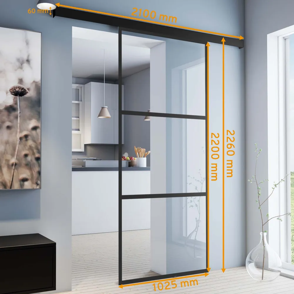 Porte coulissante intérieure en verre, porte vitrée 102 x 220 cm, style industriel