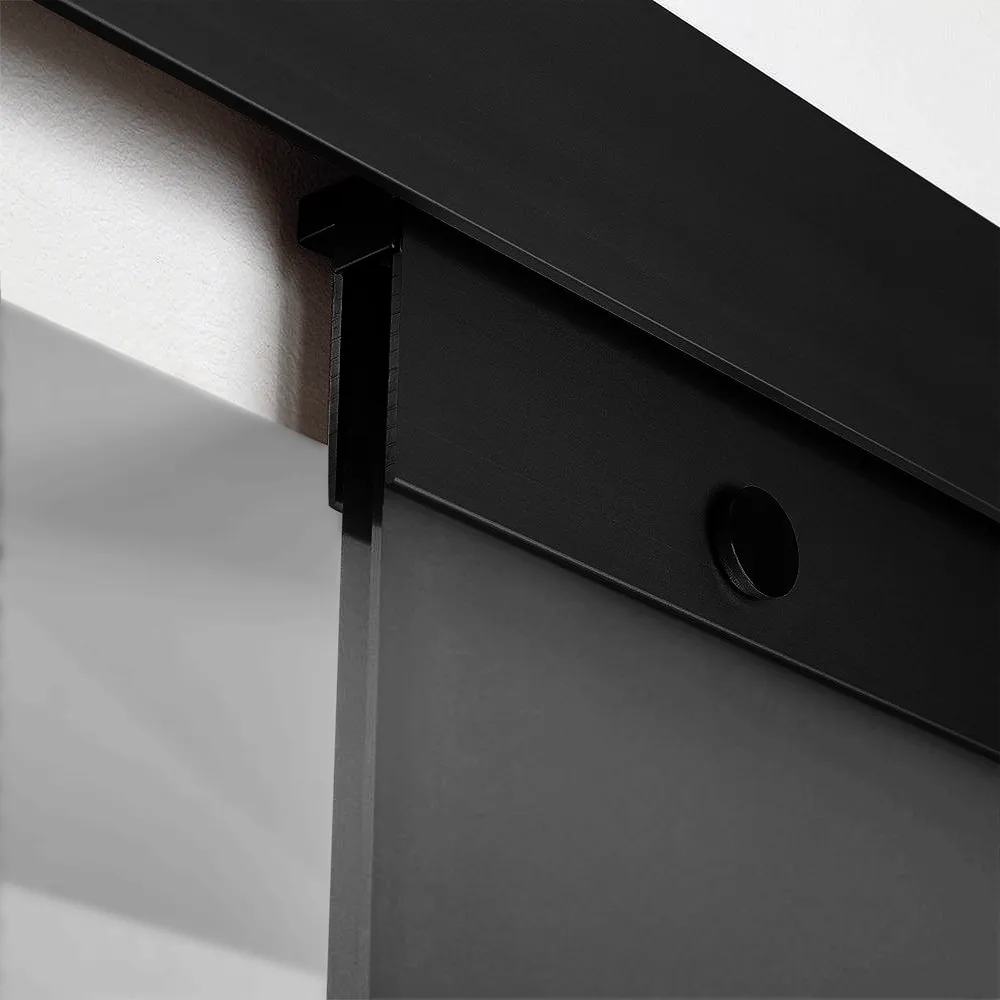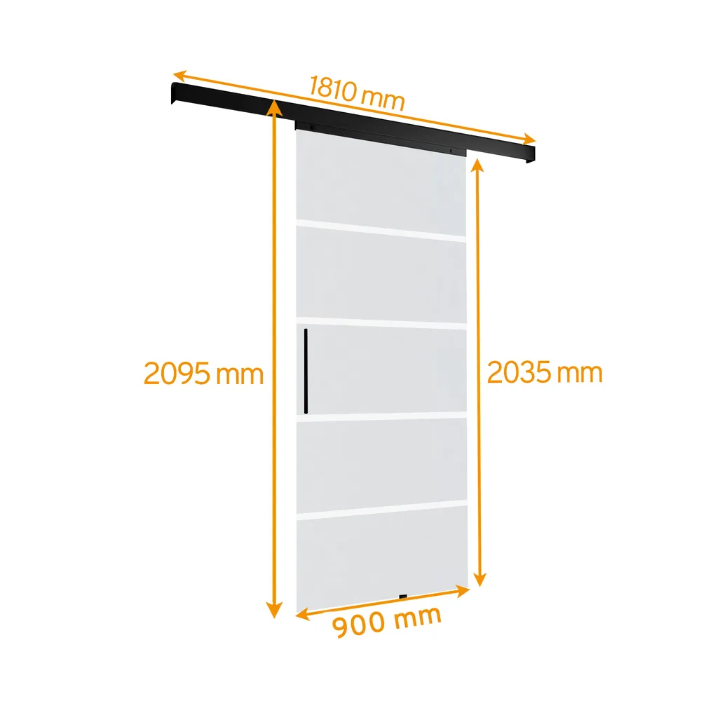 Porte coulissante intérieure en verre 90 x 203 cm, porte vitrée décor dépoli, poignée et rail noirs