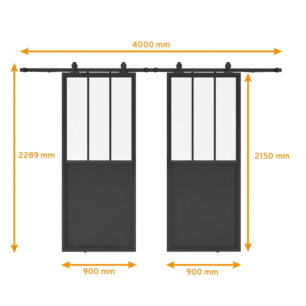 900 (x2) mm - Hauteur totale avec rail 2289 mm