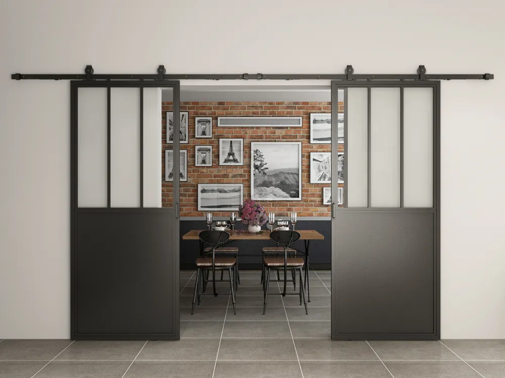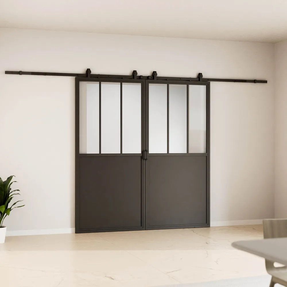 Double porte coulissante intérieure en verre 180 x 215 cm, porte vitrée noire, style industriel, double amortisseur Softclose