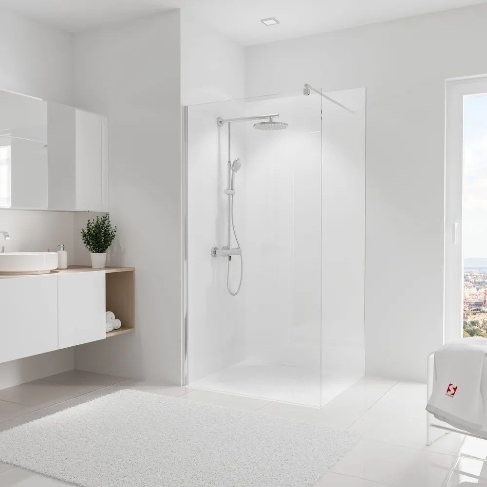 Pratique : revêtement ultra-fin de 3 mm à poser directement sur votre ancien carrelage ou sur le mur nu. Idéal pour une salle de bain neuve ou en rénovation.