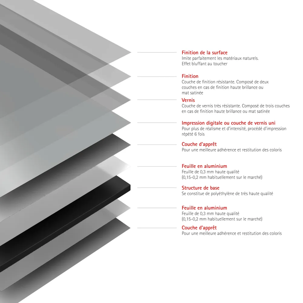 Matériau de qualité : composite d’aluminium résistant aux UV, aux chocs et rayures. Ne se décolore pas.