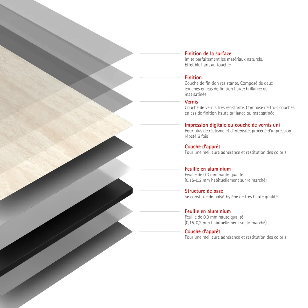 Matériau de qualité : composite d’aluminium résistant aux UV, aux chocs et rayures. Ne se décolore pas.