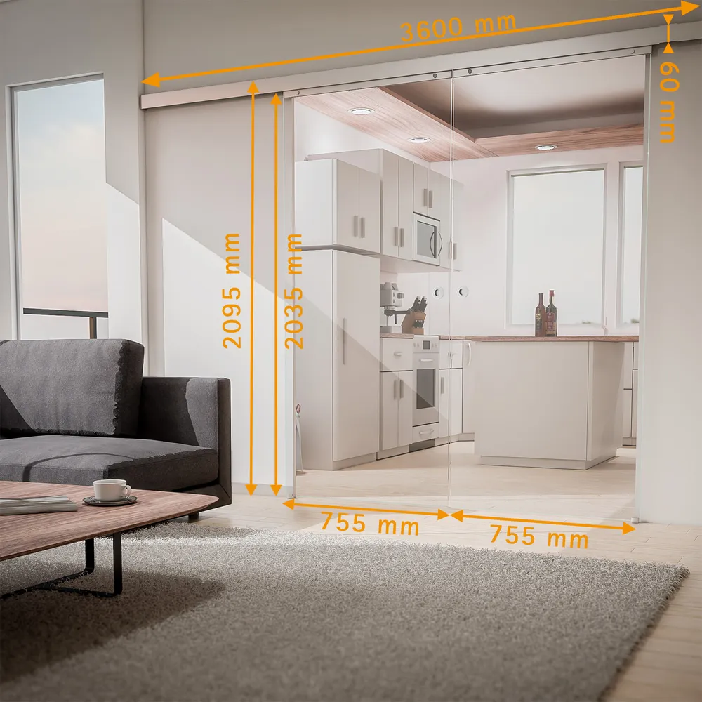 755 (x2) mm - Hauteur totale avec rail 2095 mm