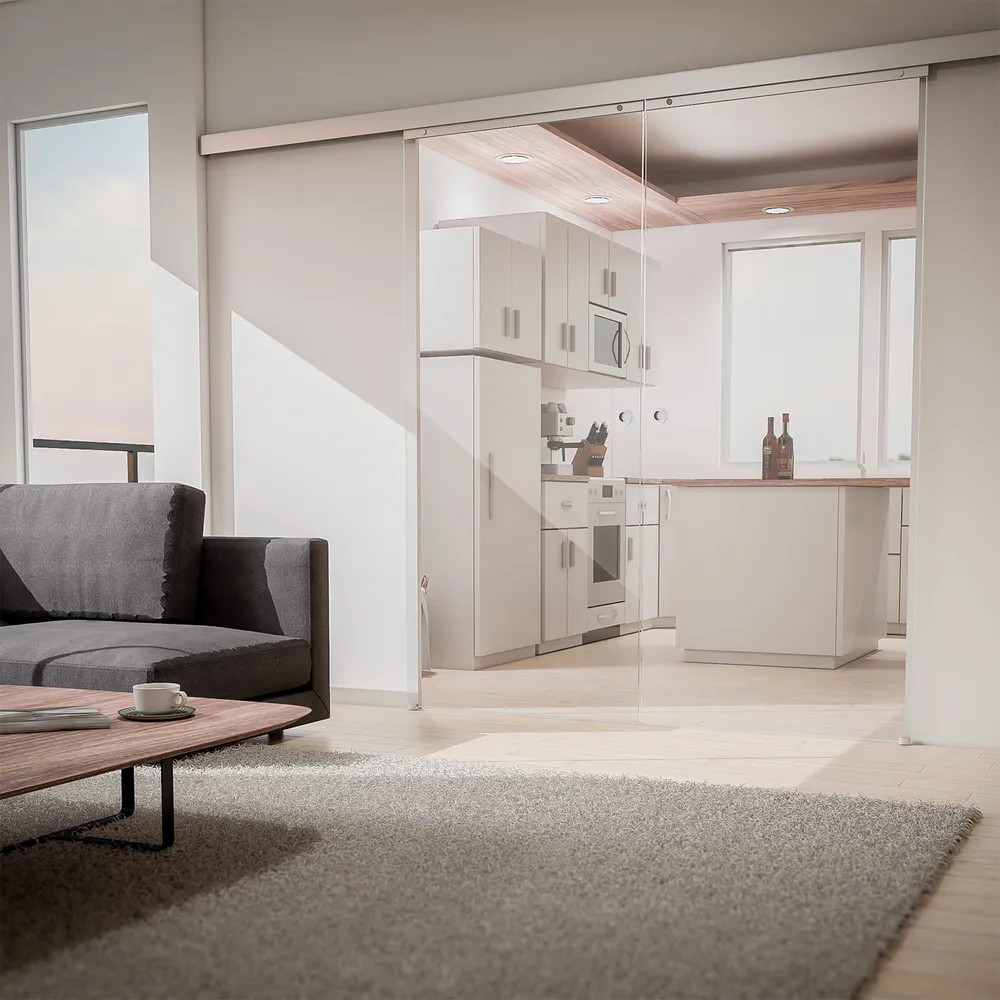 Vous cherchez une solution élégante et fonctionnelle pour séparer vos espaces sans perdre en luminosité ? Cette porte coulissante en verre est la réponse idéale ! À la fois design, pratique et facile à installer, elle s’adapte à tous les styles d’intérieur et apporte une touche moderne à votre habitat. Avec son système en applique, la porte coulissante intérieure glisse sur un rail le long du mur et reste apparente. Elle offre ainsi un gain de place considérable par rapport à une porte pivotante classique.