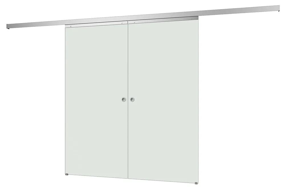 Double porte coulissante intérieure en verre, porte vitrée 176 x 203 cm, verre opaque, poignée ronde
