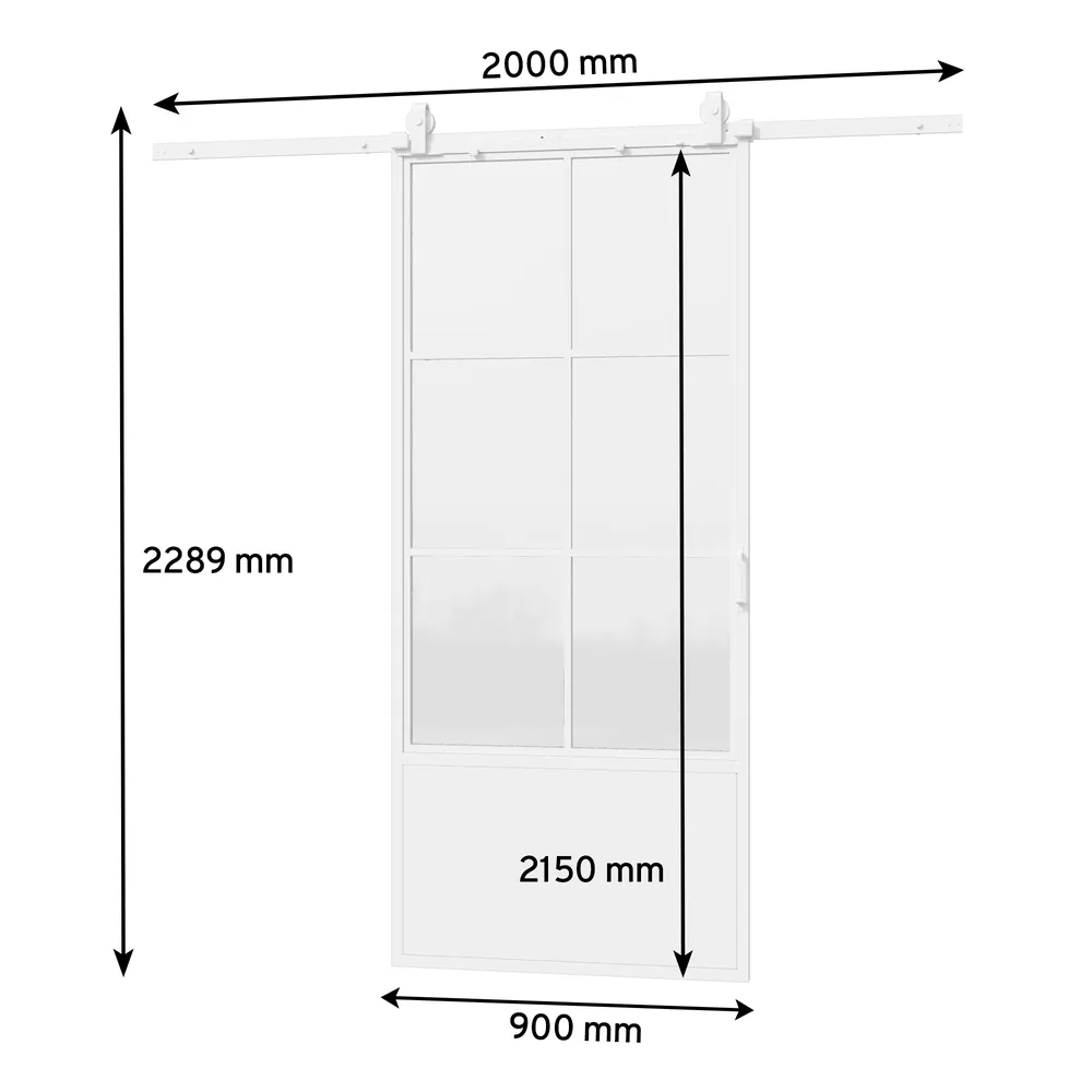 Porte coulissante intérieure en verre, porte vitrée encadrée 90 x 215 cm, verrière blanche, double amortisseur Softclose