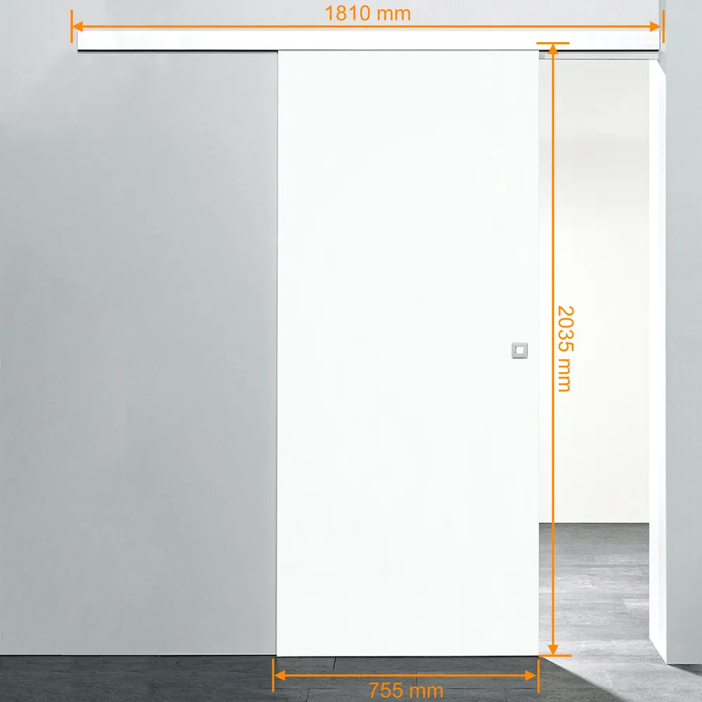 Porte intérieure coulissante en bois, 75x203cm, porte intérieure pleine, bois blanc, poignée carrée