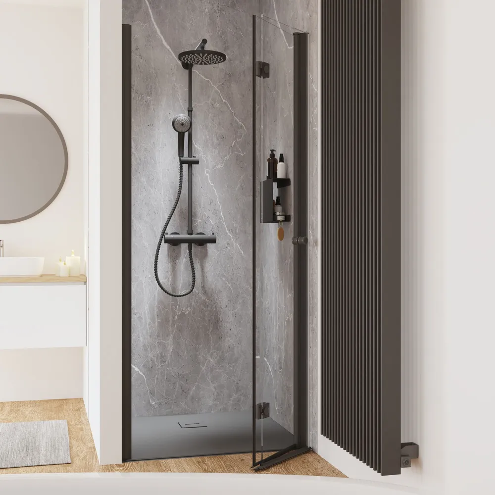 Garant 2.0 - Porte de douche pivotante pliante, 800 mm, 2000 mm, Charnière, Noir mat, Transparent