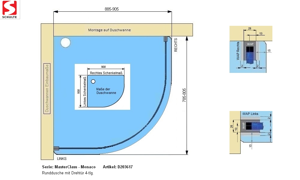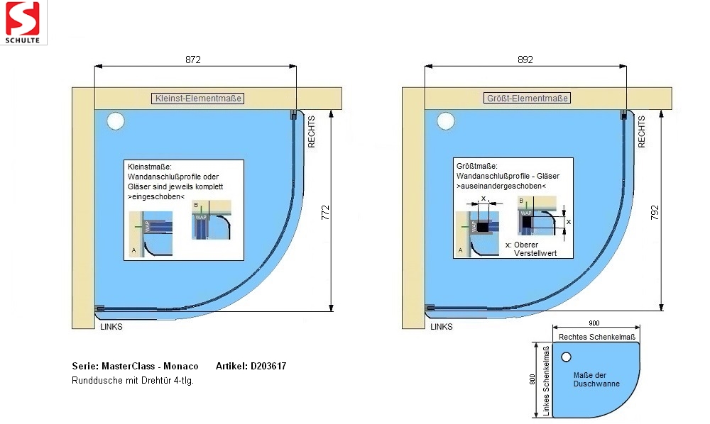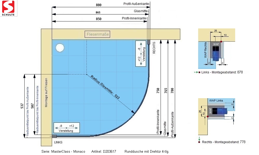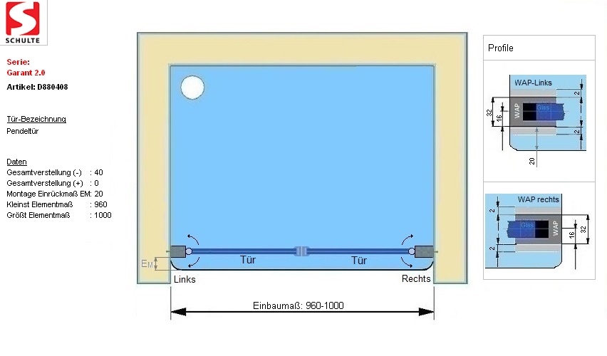 La forme de la charnière et la plage de réglage peuvent faire une différence décisive dans le dimensionnement. En cas de doute, veuillez contacter notre service clientèle.