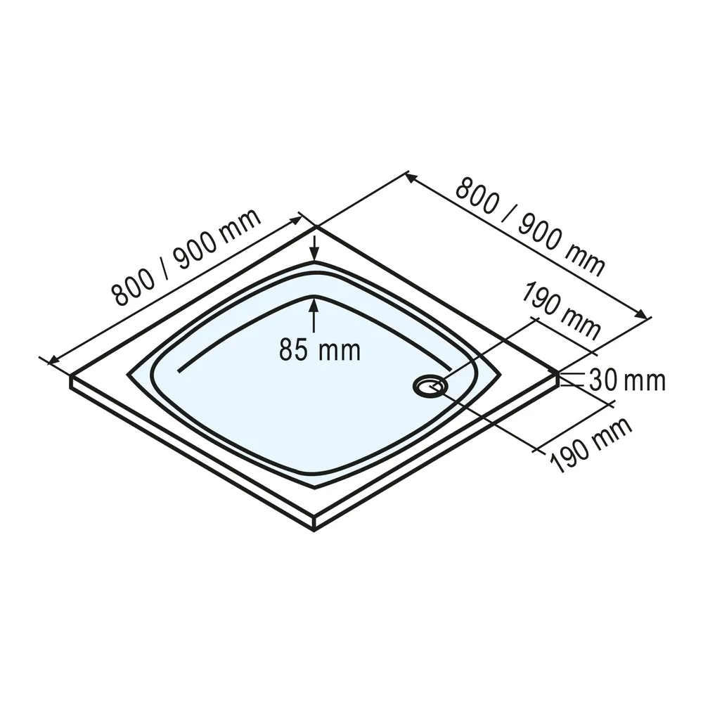 Receveur de douche 80 x 80 cm, carré, acrylique blanc, léger, à poser ou à encastrer