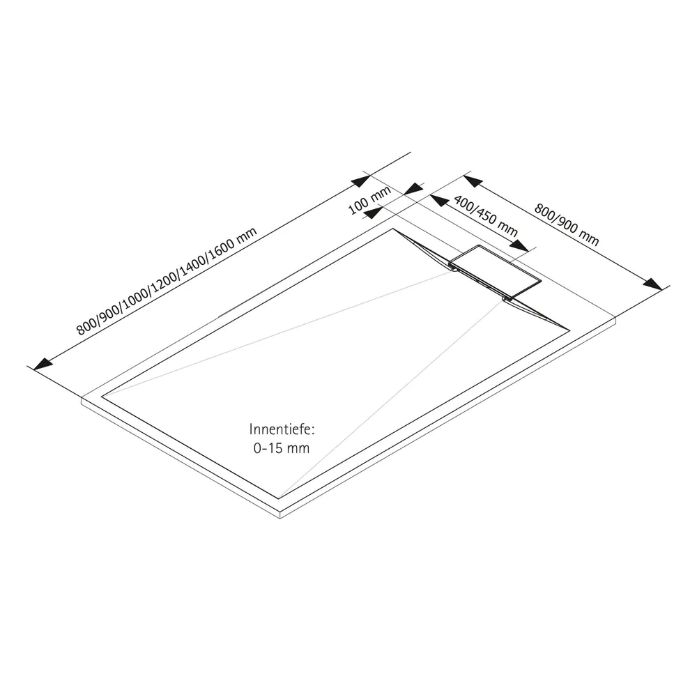 Receveur de douche 80 x 120 cm, rectangulaire, effet pierre, couleur ardoise, ultra-léger