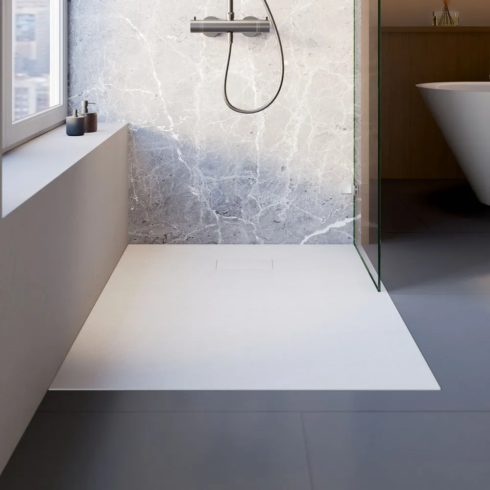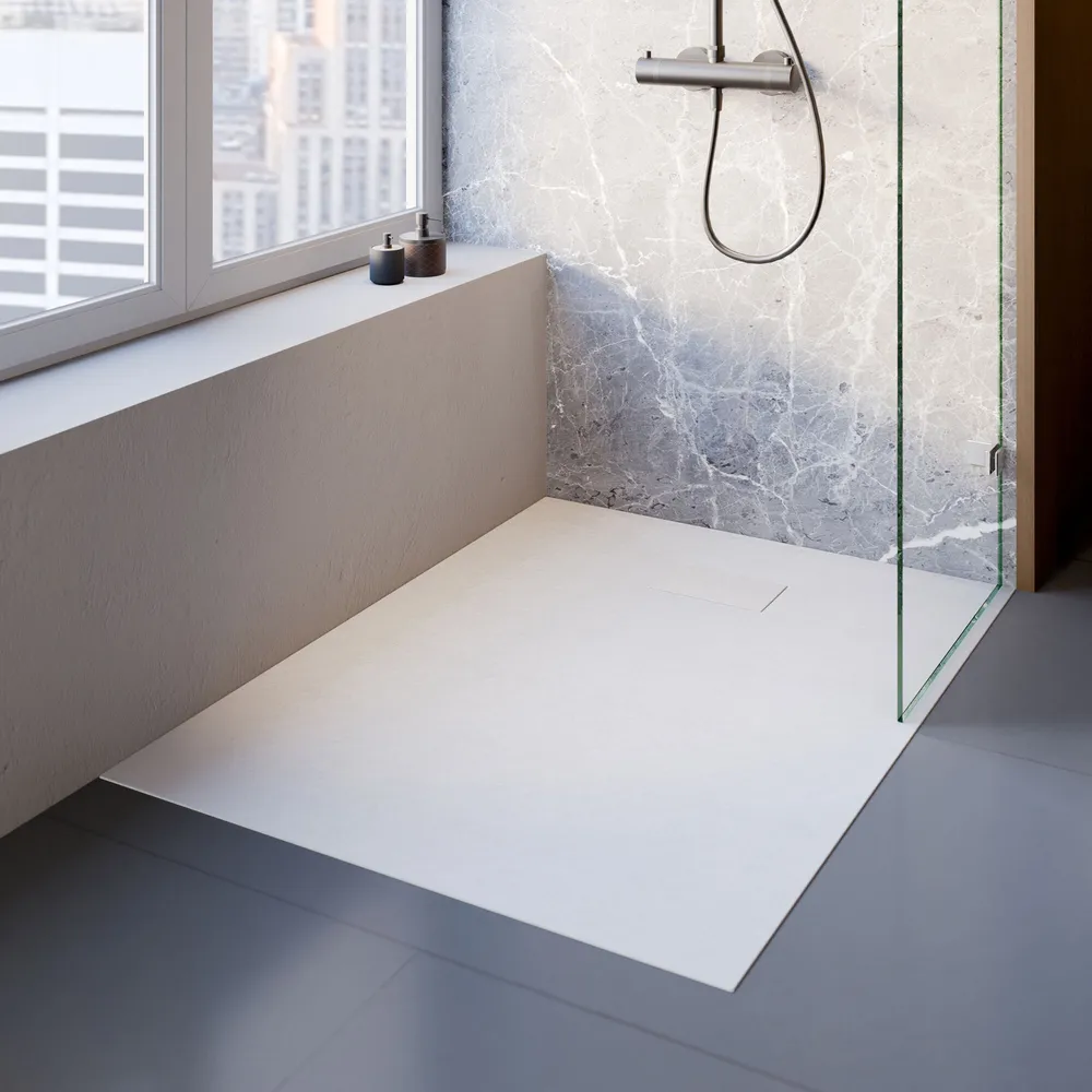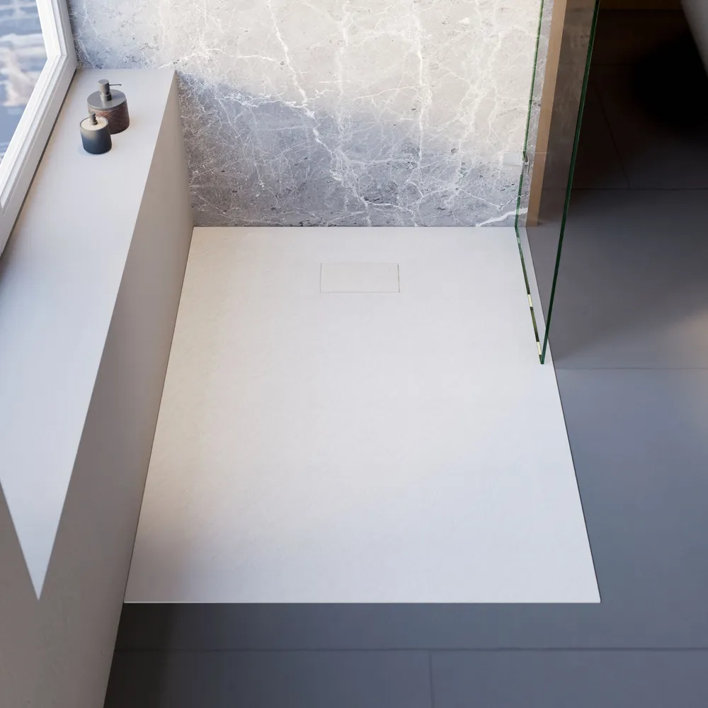 Receveur de douche 90 x 140 cm, rectangulaire, effet pierre, blanc mat, ultra-léger